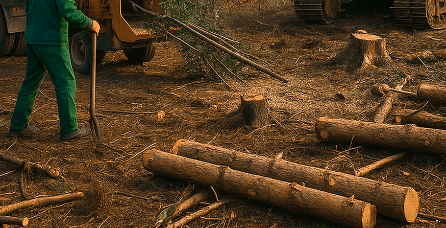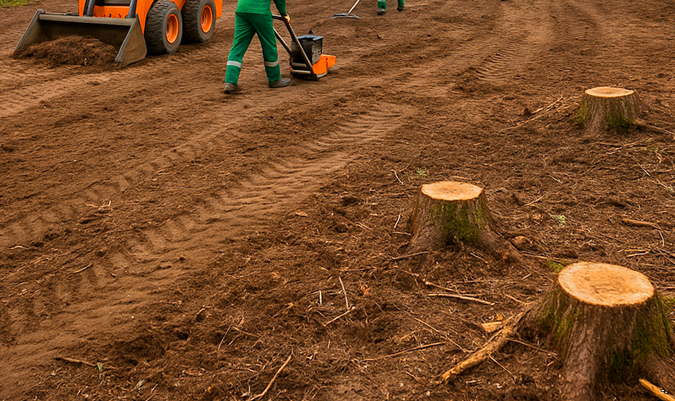 ! ПОСМОТРЕТЬ ВСЕ ЦЕНЫ НА РАБОТЫ ! Технология и этапы расчистки участкаОсмотр и составление плана ландшафтных работВыезжаем на участок. Оцениваем площадь, густоту растительности, породы деревьев, наличие пней, мусора, рельеф. В Ивашково перед расчисткой мы составили карту с отметками всех аварийных берёз – чтобы не повредить здоровые. Согласовываем с заказчиком, что оставить (плодовые деревья, ценные кустарники), а что удалить. Определяем необходимость вывоза грунта и планировки.Валка и вырубка деревьевСпиливаем деревья бензопилами или экскаватором с захватом. В стеснённых условиях используем промышленный альпинизм. Все стволы распиливаем на кряжи длиной 2–4 метра для удобства вывоза. Ветви измельчаем в щепу рубительной машиной. В Белой Колпи мы переработали 15 кубометров веток в мульчу – заказчик использовал её для дорожек.Корчевание пней и удаление порослиПни удаляем экскаватором (быстро, но остаётся яма) или фрезой (ровно, без ямы). Мелкую поросль (кустарник, молодняк) срезаем кусторезом или мульчером – он перемалывает её в щепу прямо на месте. В деревне Раменье после вырубки леса остались сотни мелких пней – мы их измельчили фрезой за два дня, участок стал гладким.Вывоз мусора и порубочных остатковВсе спиленные деревья, ветки, пни, а также бытовой и строительный мусор грузим в самосвалы и вывозим на полигон. Ничего не сжигаем на месте. В Козлово мы вывезли 12 самосвалов старого шифера и досок – участок стал чистым.Планировка и выравнивание участкаПосле удаления растительности и мусора проводим планировку: срезаем бугры, засыпаем ямы, выравниваем поверхность бульдозером или экскаватором с отвалом. При необходимости завозим плодородный грунт или песок. В Ивашково после расчистки мы выровняли участок под газон – теперь там ровная зелёная лужайка.Такой комплексный подход превращает заросший пустырь в ровную площадку, готовую для стройки или сада.