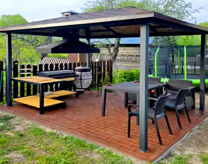 ! ПОСМОТРЕТЬ ВСЕ ЦЕНЫ НА РАБОТЫ ! Технология строительства мангальной площадки и зоны барбекюПроцесс включает выбор места, подготовку основания, возведение мангала/печи, обустройство навеса и зоны отдыха. Мы разбили его на несколько ключевых этапов. Этап 1. Проектирование и выбор местаОпределяем размер площадки (стандарт 3×4 м, 4×5 м), расположение мангала (с учётом ветра), наличие навеса, столешниц, мойки, дровницы. Учитываем удалённость от дома (минимум 5 м), деревьев и забора. В Раменье из-за частых ветров мы спроектировали площадку с высокими боковыми стенками из кирпича. Этап 2. Подготовка основания и фундаментСнимаем плодородный слой грунта (20–30 см), отсыпаем песчано-гравийную подушку (10+10 см), трамбуем. Для бюджетного варианта укладываем тротуарную плитку (брусчатку) на песок или бетонное основание. Для капитальной зоны заливаем армированную бетонную плиту толщиной 10–15 см (М300). Под стационарный кирпичный мангал делаем отдельный ленточный фундамент. В Козлово мы сделали площадку из брусчатки на бетонном основании — уже 4 года без просадок. Этап 3. Возведение мангала или уличной печиИспользуем шамотный кирпич (огнеупорный) для топки и керамический для внешней кладки. Мангал может быть стационарным (с казаном, вертелом, коптильней) или передвижным. Важно предусмотреть зольник, колосники и дымоход (для печи). В СНТ «Лесное» мы сложили мангал с казаном и дымоходом — шашлык и плов получаются отменными. Этап 4. Навес и кровляДля защиты от дождя и солнца монтируем навес на металлических или деревянных столбах (брус 100×100 мм). Кровля — поликарбонат (сотовый 8–10 мм), профнастил, металлочерепица или мягкая черепица. Важно сделать уклон для стока воды. В Ивашково навес обшили поликарбонатом — внутри светло и не жарко. Этап 5. Обустройство зоны отдыха и отделкаУстанавливаем столешницы из керамогранита или натурального камня, подводим электричество (освещение, розетки), воду (мойка). Зону отдыха мостим той же плиткой или деревянным настилом из лиственницы. Вокруг можно высадить газон или сделать отсыпку галькой. В Житонино мы сделали освещение светодиодной лентой под навесом — вечером очень уютно.