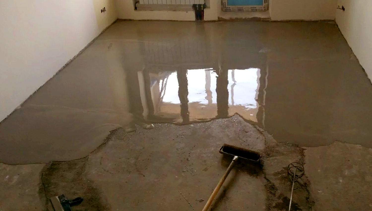 🛠 Технология укладки – пошаговый регламент🔸 1. Подготовка основанияУдаляем слабый бетон, обеспыливаем, грунтуем адгезионным составом. При наличии коммуникаций трубы фиксируем клипсами, а кабели укладываем в защитной гофре. В Климово перепад плиты составлял 80 мм – перед основной стяжкой выполнили локальное выравнивание ремонтным составом. 🔸 2. Установка маяков и заливкаЛазерным нивелиром выставляем направляющие профили с шагом 1,5 м. Полусухую смесь (влажность 16–18%) распределяем пневмонагнетателем, что ускоряет процесс и минимизирует грязь. В Чисмене объект площадью 90 м² мы подготовили за один рабочий день: бригада из трёх человек подала 12 м³ раствора и сразу провела шлифовку вертолётной машиной. 🔸 3. Уход и деформационные швыПервые трое суток поверхность увлажняем и накрываем плёнкой, предотвращая растрескивание. Швы нарезаем алмазным диском на 1/3 толщины стяжки, заполняя их эластичным герметиком. В Спассе таким образом удалось избежать хаотичных трещин в отапливаемом холле площадью 50 м². 🔸 4. Финишное выравнивание наливным поломПосле набора прочности наносим самовыравнивающуюся смесь: ровнитель растекается слоем от 2 до 10 мм, заполняя мельчайшие поры. В Ядрово с помощью полимерцементного ровнителя подготовили основание под кварцвиниловый ламинат – просвет под двухметровой рейкой не превысил 1 мм.